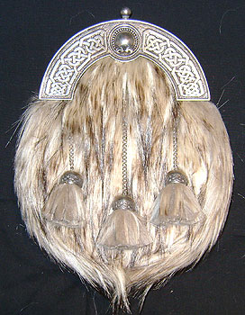 Brown dress sporran with a celtic torque cantle (Pewter top) The sporran is made with lorica and faux fur and is availble with either crossed or straight tassels.